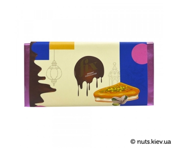 Ніжність шоколаду плавно поєднується з кремовою текстурою тахіні, а фісташки додають витонченого горіхового смаку. Завершує цю симфонію хрустке катаїфі, що дарує шоколаду унікальну текстуру та легкість.